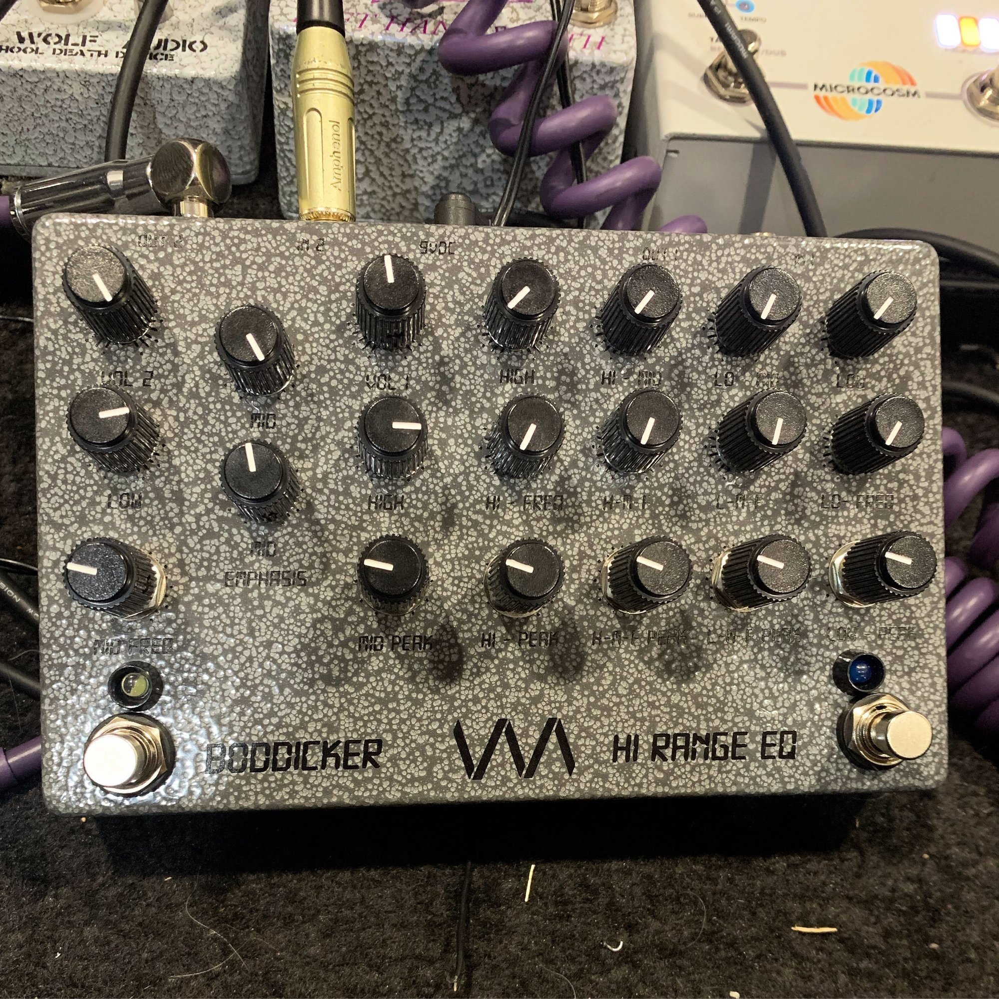 10 spots in Blood on ice vein shipping in JAN 2026. If you cant handle the wait time, I request that you do not order this product. Note, I REALLY tried my best to make this the best price possible but with the 6 rotary switches, all of the control parameters, knob costs, the larger enclosure size, Voltage converters etc , this was the trade off. The Boddicker EQ is a high headroom dual split stereo EQ, Offering more than any other brand has ever offered in an effects pedal. Run 1 side up front, 1 side in the loop parallel , Or link both sides for series operation. OR, run it table top in your audio chain for a tangible hardware based option for EQing. The right side is a gyrator based EQ with 4 peak rotary selectors per band, and sweepable frequency controls for surgically finding the EXACT peak and range per band you are after. 6 positions EACH. The left side is based on my rare SECK 1882 6 channel mixing console, expanded out to allow for maximum midrange control. Set your mid peak from a further 6 positions each on the Mid frequency and Mid Peak rotaries. The mid emphasis parametrically sweeps -/+ range based on where the MID knob is set. Take all of that and you have a massively interactive EQ with more tonal combinations and options than anything else out there. Endless EQ capability Enforcement. You cannot, buy that for a dollar. As this is a hand made product, built 1 at a time for you, all sales are final and no refunds are offered. This product utilizes voltage converter circuitry which requires the use of a high end isolated and regulated power supply. That basic one spot/ wallwart supply isnt good enough. We suggest and use Cioks/ Walrus and Strymon brand power supplies. You should too. You are responsible for any and all customs/VAT charges incurrent by your country.